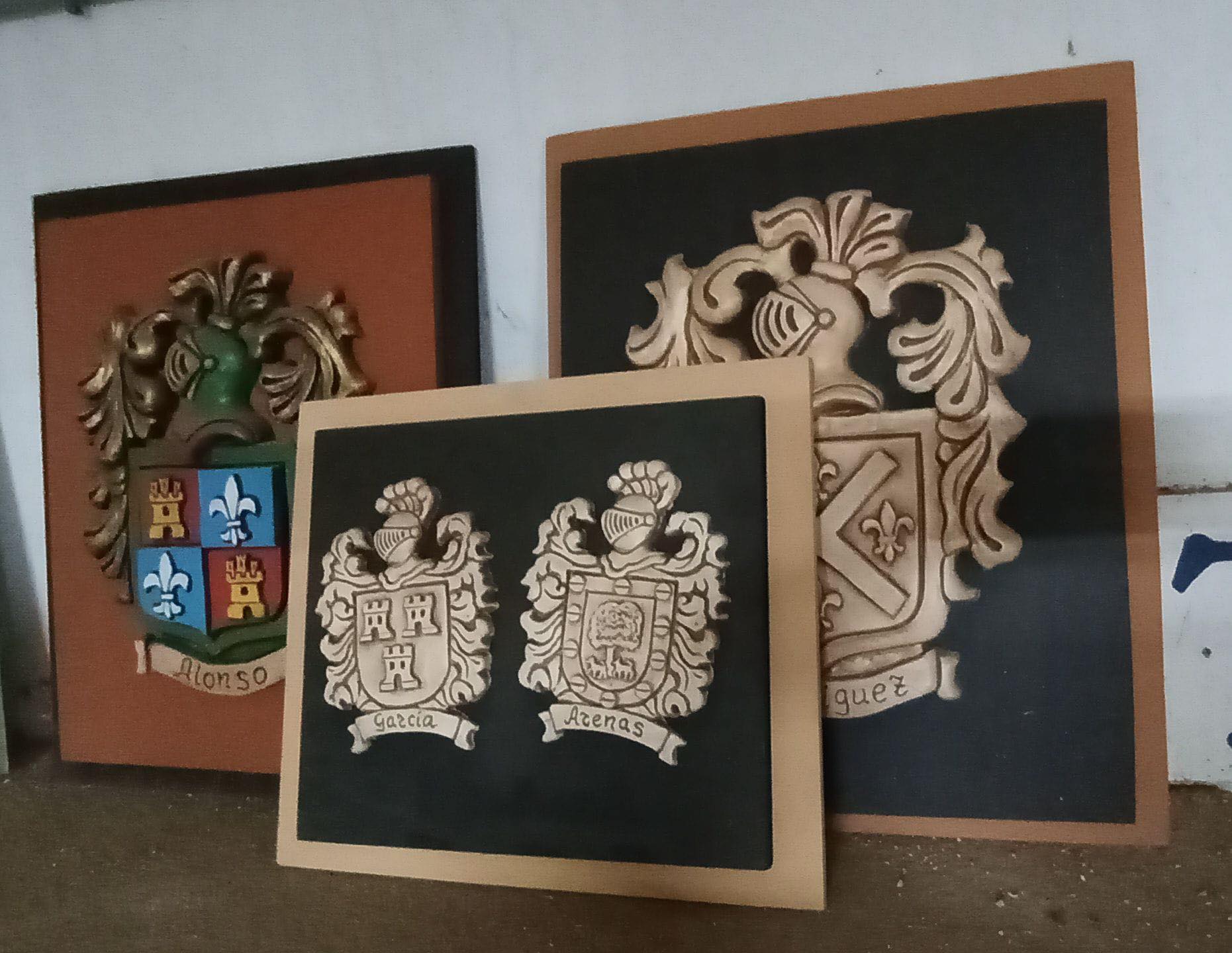 - Escudos heráldicos por encargo y otros trabajos especiales, ideales para sorprender con el apellido de la nueva familia en formato decorativo.