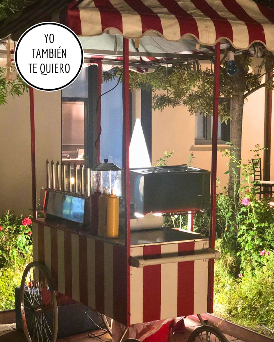 Carrito de Hot Dogs para bodas, perfecto para las meriendas o las recenas: un toque casual y delicioso para coger fuerzas y seguir con la fiesta. Incluye cocinero, carrito, ingredientes, complementos y variedad de salsas. Desde 350 € / 100 unidades (máximo 3 horas de servicio).