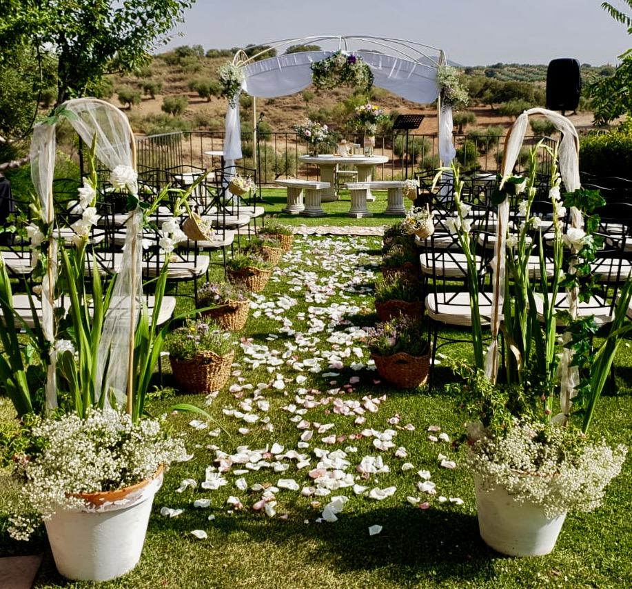- Espacio para ceremonia civil en el mirador con vistas al olivar, preparado para el “sí, quiero” al aire libre.