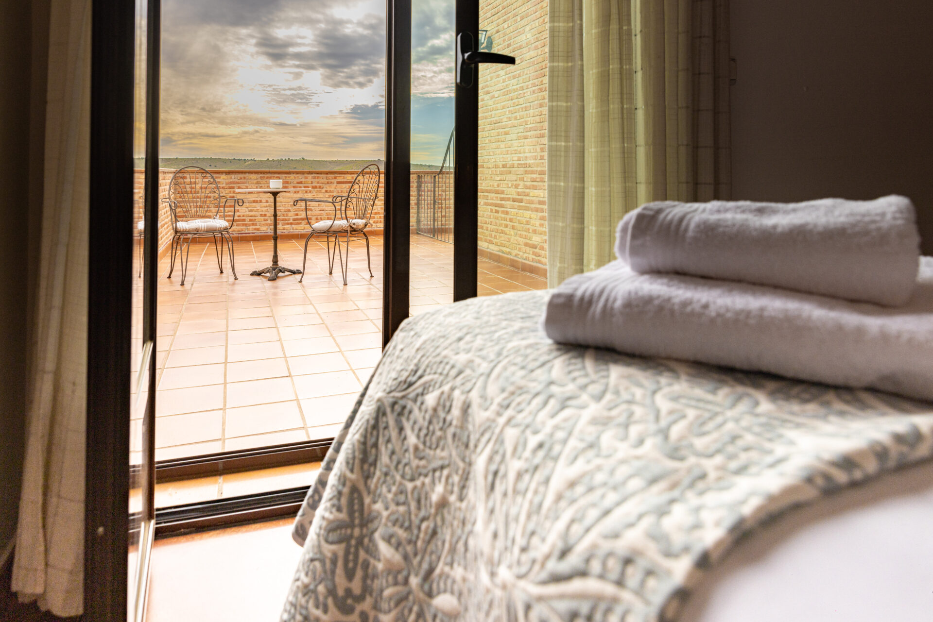 - Habitaciones con vistas: 10 habitaciones exteriores, cada una inspirada en un pintor, con vistas a los olivares y al valle. La suite nupcial se reserva para los novios y el resto de habitaciones para familiares y amigos más cercanos.