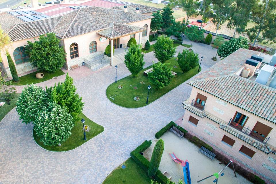 El complejo incluye un hotel de 4 estrellas con unas 40 habitaciones dobles y 4 suites, una de ellas nupcial, de forma que novios y familiares puedan dormir a pocos metros del lugar del banquete. -