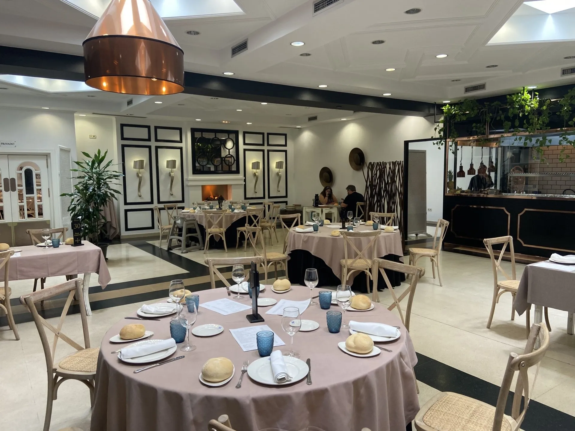 - Salones de boda: varios salones interiores elegantes y climatizados, con capacidad aproximada para hasta 300 comensales en banquete. Son espacios amplios, pensados para bodas, comuniones y grandes celebraciones, con montaje de mesas redondas y presidencia.